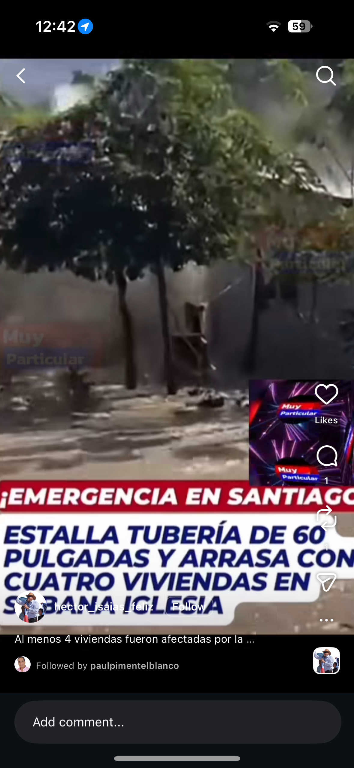 Al menos 4 viviendas fueron afectadas por la explosión de una tubería de 60 pulgadas del acueducto de Sabana Iglesia